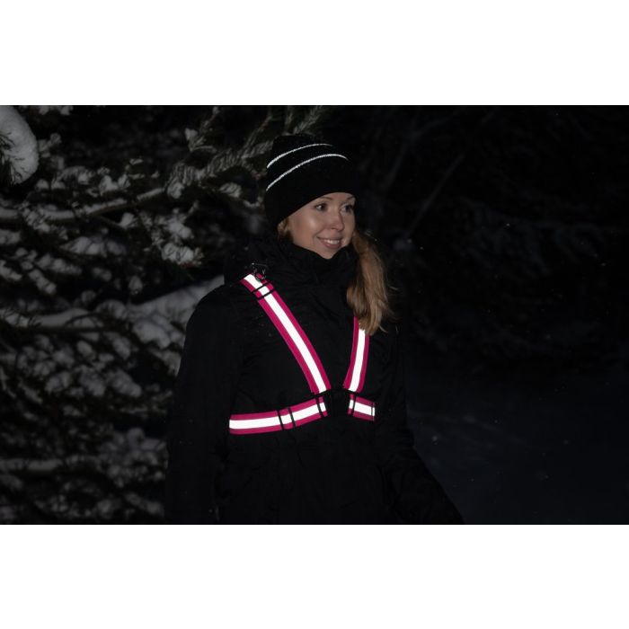 Regulējama un gaismu atstarojoša siksna. Lieliski piemērota skriešanai un riteņbraukšanai. Siksnas garums ne vairāk kā 120 cm, apkārtmērs ne vairāk kā 130 cm.