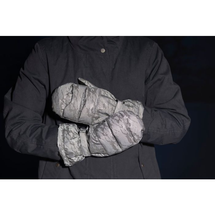 Atstarojošs materiāls. Mīksta un silta odere. Ar siksnu. Produkts nav individuālais aizsardzības līdzeklis (IAL). Tumsā vienmēr lietojiet arī CE marķējumu saturošu atstarotāju vai atstarojošo vesti. Mazgāt ūdenī 40 grādu temperatūrā.