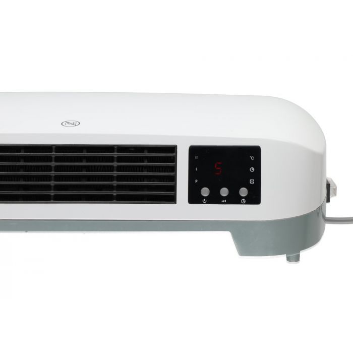 Sienas sildītājs ar efektīviem PTC sildelementiem. Divi jaudas iestatījumi 1000/2000 W ar termostata vadību. Vadāms ar tālvadības pulti vai no galvenās ierīces. LED displejs. 12 stundu taimeris. Aizsardzība pret pārkaršanu un termiskā izslēgšana. Kontaktdakšas uzstādīšana, vads 2,2 m. 230 V 50 Hz 2000 W. IPX2. Trokšņa līmenis 55 dB.