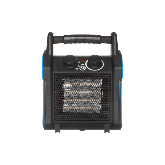Efektīvs un kompakts pārnēsājams ventilatora sildītājs ar keramikas sildelementu (PTC). Ātri uzsilst. Regulējams termostats. Divas sildīšanas jaudas un ventilatora režīms dzesēšanai. Aizsardzība pret pārkaršanu. Apsildāmā platība 20 m2, gaisa plūsma 139 m3/h. Jauda 22/1000/2000 W, 220-240 V~50 Hz. IP20. Garantija divi gadi.