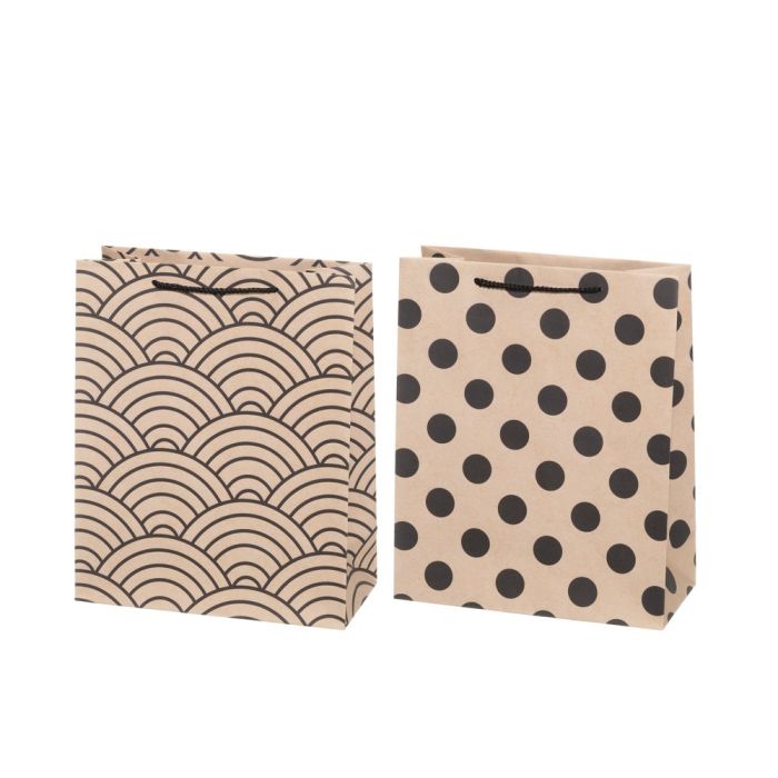 Stilīgs dāvanu maisiņš, kas izgatavots no brūna kraftpapīra ar melnu rakstu. Dāvanu maisiņi padara dāvanu iesaiņošanu vienkāršu un ātru. Tie ietaupa laiku un pūles, īpaši aizņemtajās svētku sezonās. Stiprums: 210 g. Melni virves rokturi.