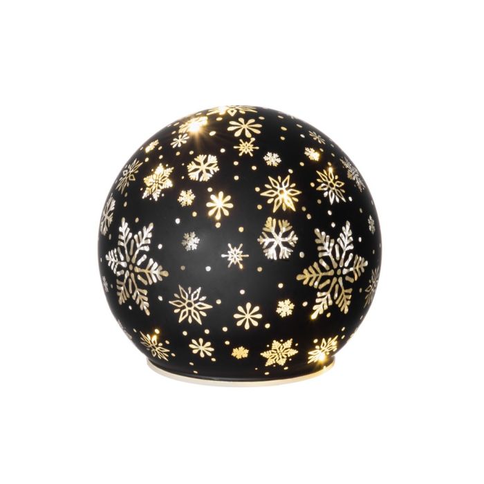 Skaista dekoratīva stikla bumba, kas jebkurā telpā ienes mājīgu mirdzumu. Bumbas iekšpusē ir 10 silti baltas LED gaismiņas, kas maigi spīd un izceļ virsmā iegravētos sniegpārslu rakstus. Gaisma filtrējas cauri rakstiem, metot ap to skaistas ēnas. Stikla bumba darbojas ar 3 x AA baterijām (nav iekļautas komplektā), tāpēc to var viegli novietot jebkur bez vadiem. Lielisks rotājums ziemas sezonai, svinībām vai kā noskaņas apgaismojums.