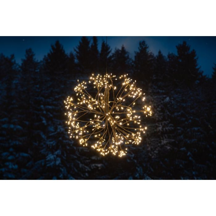 Stilīgajai un uzmanību piesaistošajai LED gaismas bumbai ir melns korpuss un skaista silti balta gaisma no 264 mazām LED gaismiņām. Diametrs 40 cm. Komplektā ietilpst 5 m savienojošais kabelis, IP44 transformators lietošanai iekštelpās un ārā.