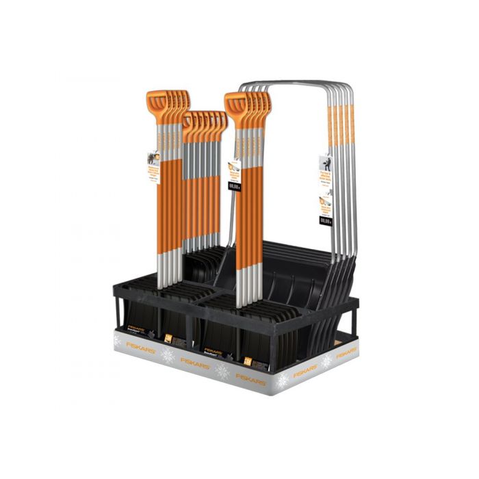 Viegls un izturīgs alumīnija rokturis ar neslīdošu plastmasas pārklājumu. Atjaunināts, ergonomisks D formas rokturis. Izturīgs polipropilēna spainis ir izturīgs pret bojājumiem un nodilumu. Skrāpja asmenim ir alumīnija mala, kas pastiprināta ar tērauda ieliktni. Slapjš sniegs nelīp pie asmens, palielinot produktivitāti.
