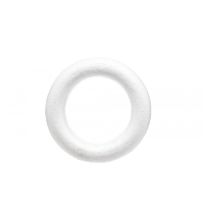 Izveidojiet savu ziedu vainagu, izmantojot šo balto putuplasta vainagu kā pamatu. Putuplasta vainagu var krāsot, krāsot, piespraust, slīpēt utt.