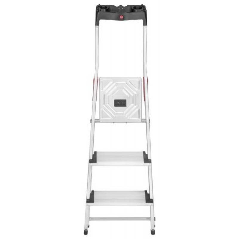 Alumīnija kāpnes ar daudzfunkcionālu plauktu instrumentu, krāsu bundžu vai sīku detaļu novietošanai. XXL izmēra pakāpieni: 130mm dziļi ar neslīdošu rievojumu. Piemērotas HAILO nomaināmās kāju uzlikas EasyClix (papildaprīkojums). Saliktā veidā uzglabāšanā neaizņem daudz vietas. Pēc augstākās tehnoloģijas kniedētas pakāpienu savienojumu vietas.